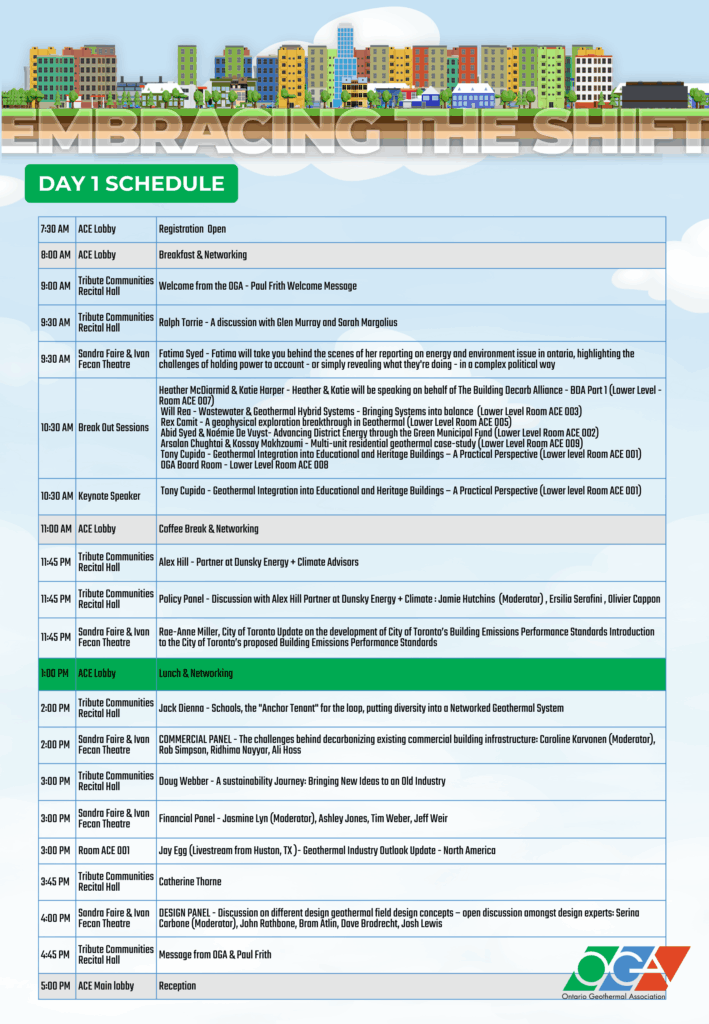 | 3:15 PM | Geoexchange Tour | Tour Canada’s largest urban geoexchange system and learn how the University of Toronto is transforming how they heat and cool the St. George campus. |